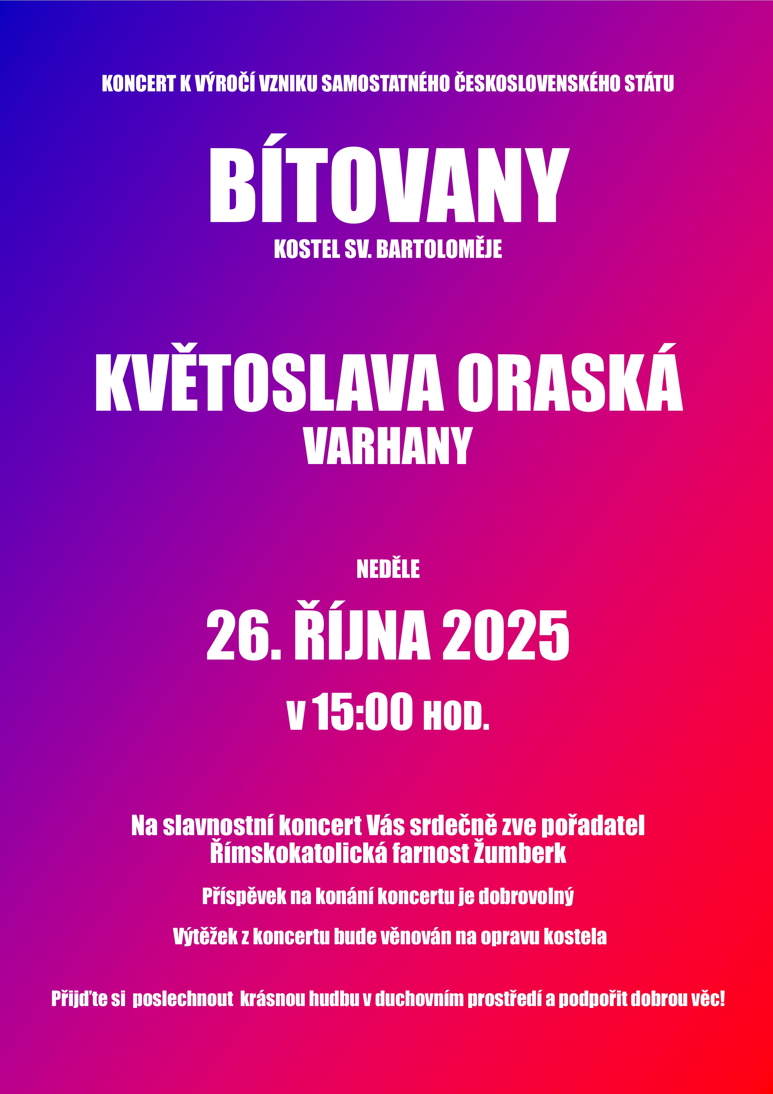 Koncert duchovní hudby Bítovany, neděle 26. října v 15:00